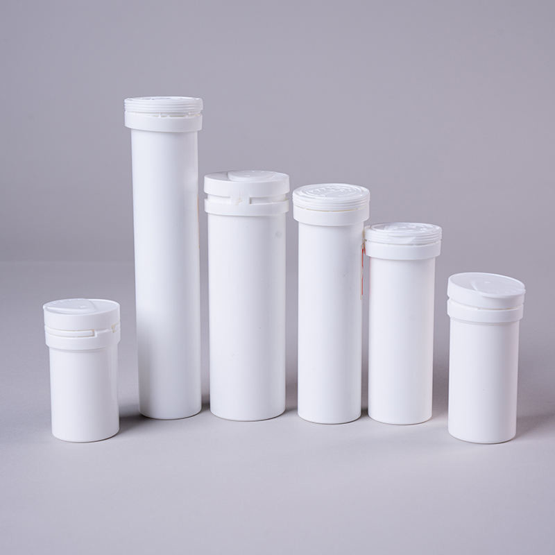 | ハイライト | effervescent tablet tube with PP Base,Desiccant cap effervescent tablet tube,White Effervescent Tablet Container |